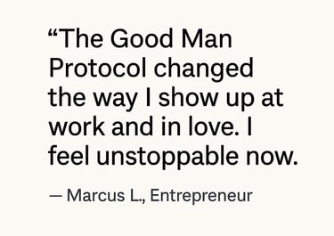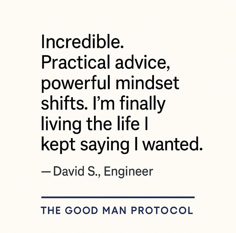 In ebook (The Good Man Protocol), you’ll learn from someone who’s already walked the hard road — faced the self-doubt, setbacks, and slow starts — and came out stronger, wiser, and in control. I’ve done the trial and error so you don’t have to.